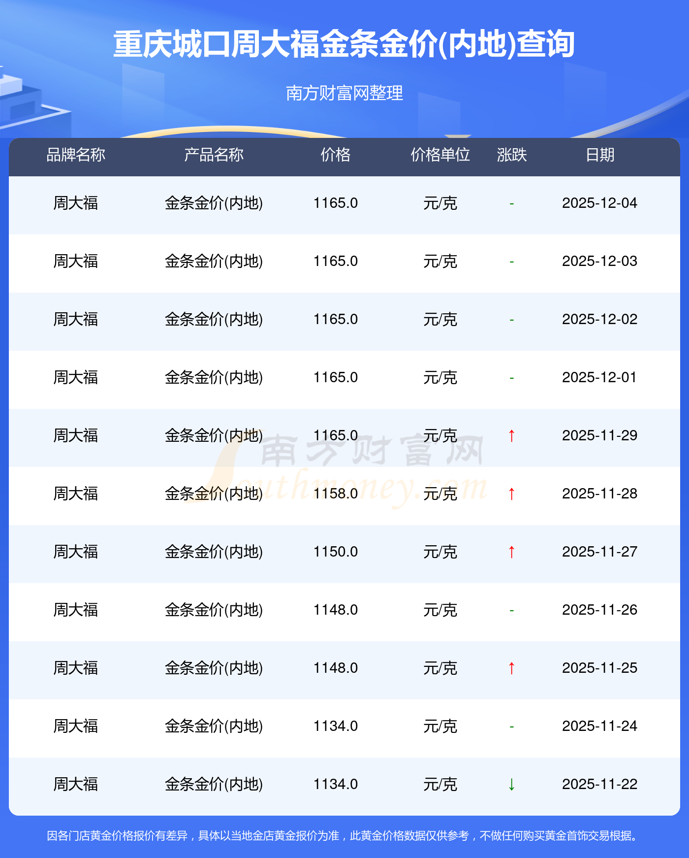 以上數(shù)據(jù)僅供參考,與當(dāng)?shù)亟鸬暧兴町悾堃詫?shí)際價(jià)格為準(zhǔn)。