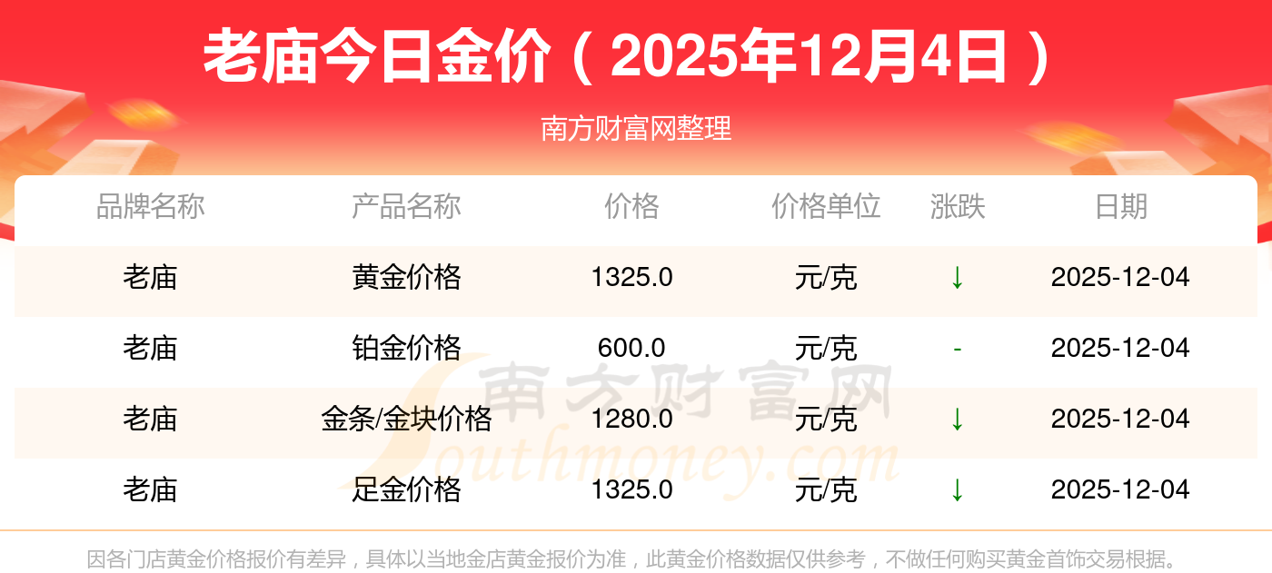 老廟金價今日多少一克,老廟黃金價格最新查詢,一起來看看吧!