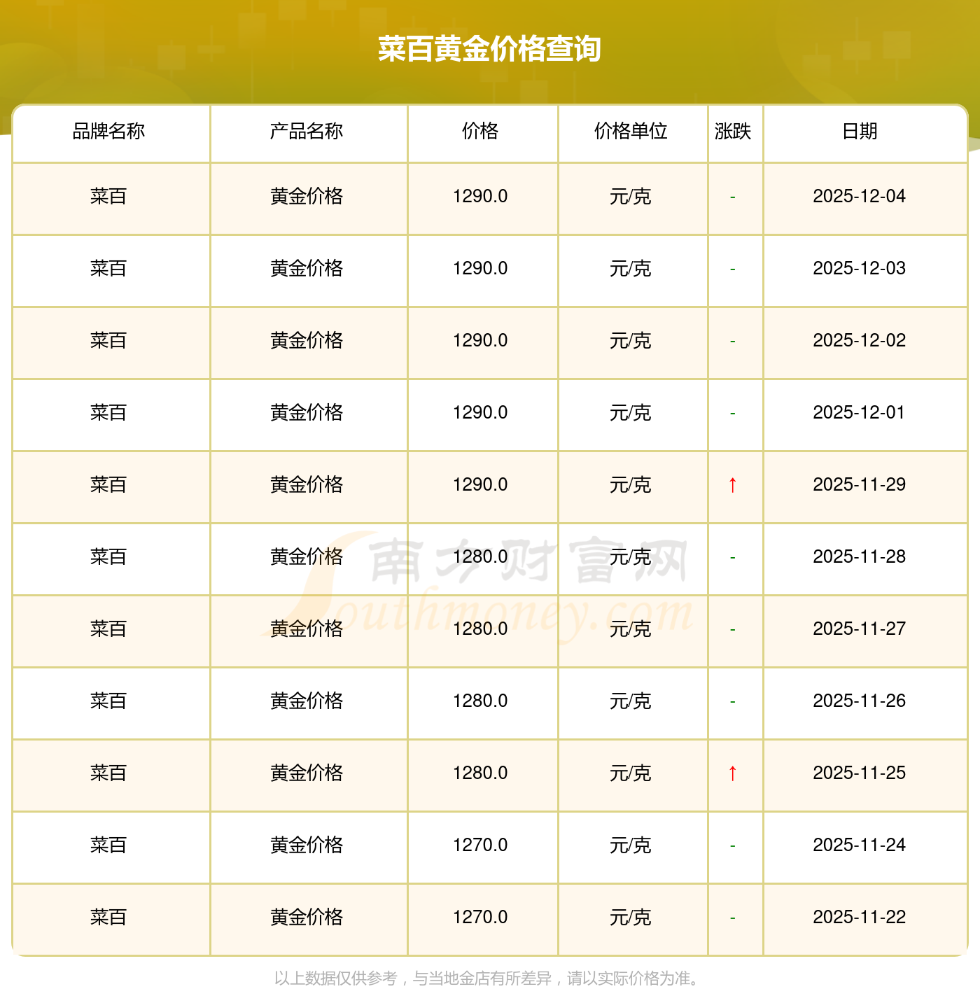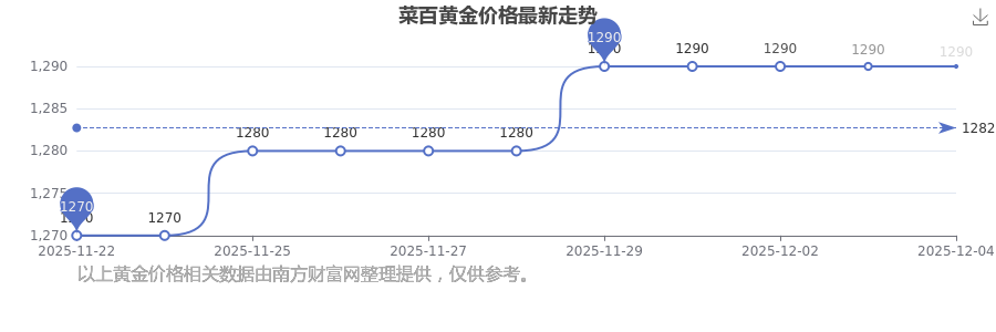 2025年12月4日菜百黃金價格為1290.0元/克。