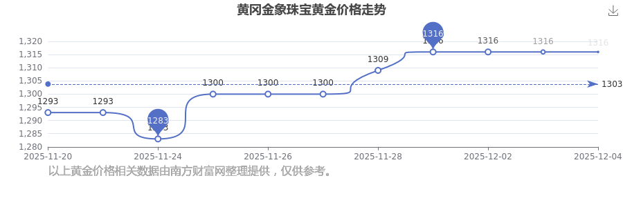 2025年12月4日黃岡金象珠寶黃金價(jià)格是1316.0元/克。