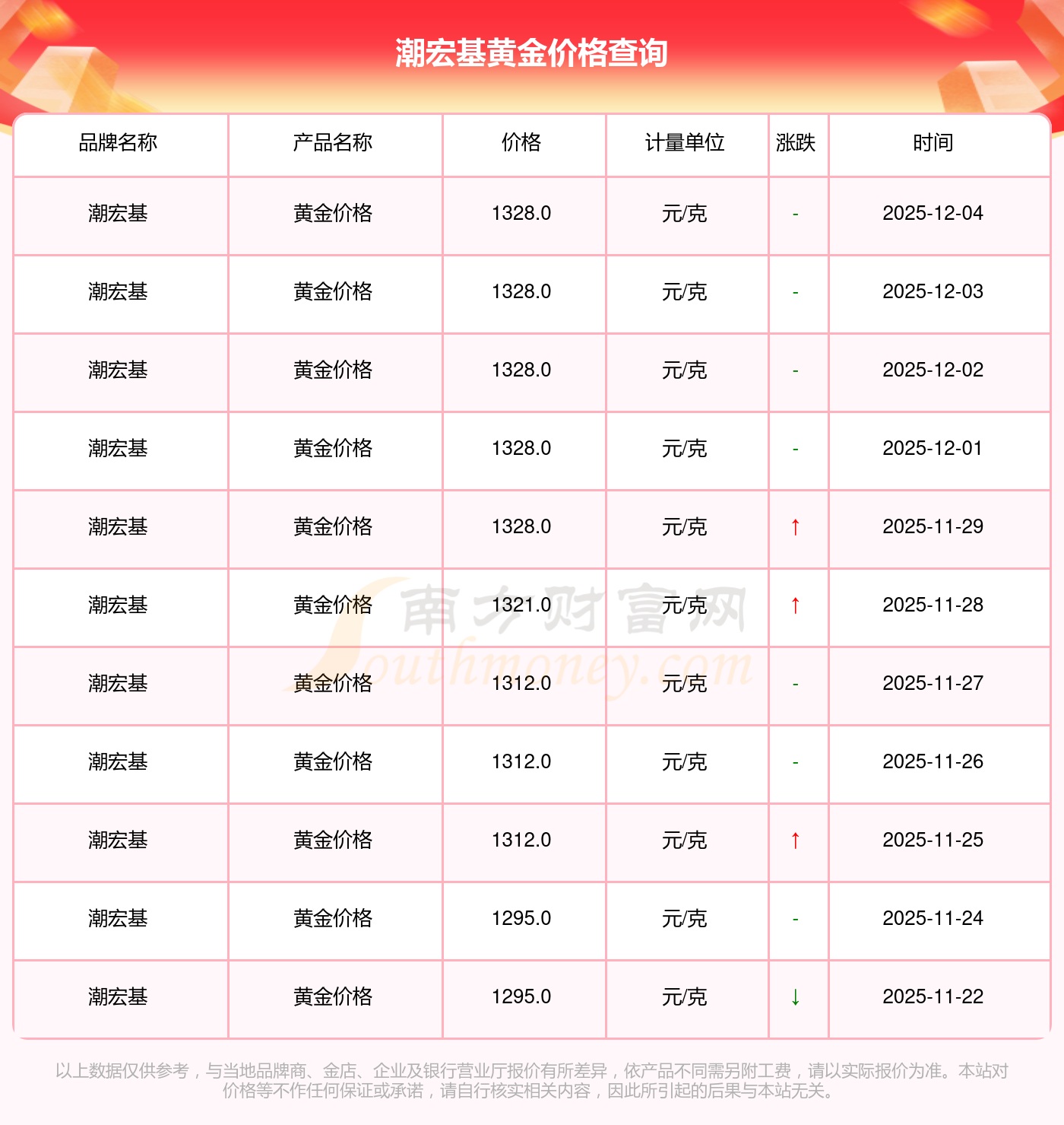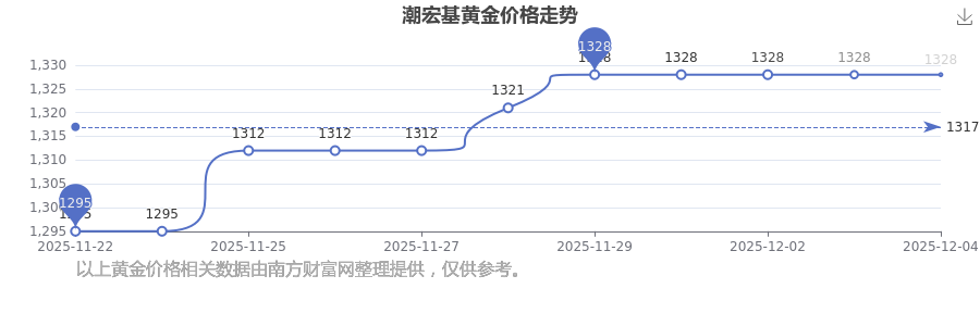 今日潮宏基 黃金價格最新的市場標(biāo)價為1328.0元/克。