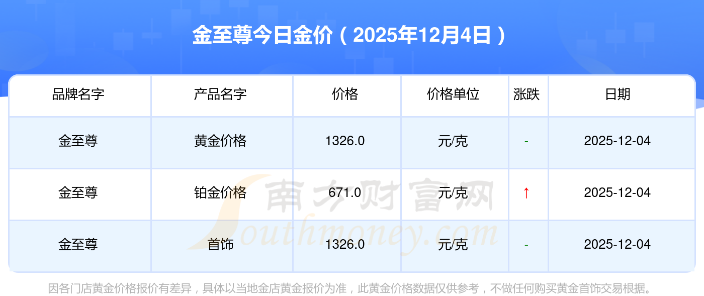 現(xiàn)在金至尊黃金價格是多少錢1克_2025年金至尊今日金價是多少錢一克,最新金至尊查詢,2025年12月4日金至尊黃金價格現(xiàn)在每克多少錢?最新金至尊黃金價格報價公布,一起來看看吧!