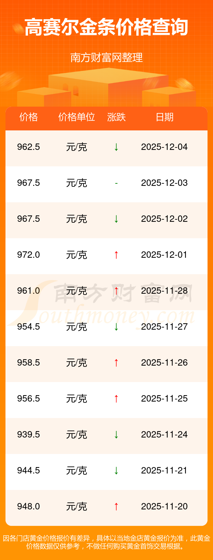 以上數(shù)據(jù)僅供參考,與當(dāng)?shù)亟鸬暧兴町,?qǐng)以實(shí)際價(jià)格為準(zhǔn)。
