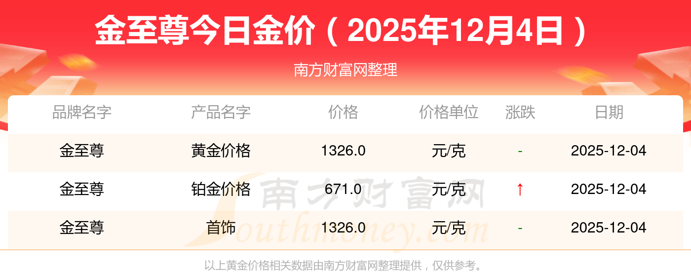 金至尊金條價(jià)格今日最新價(jià)2025實(shí)時(shí)查詢_金至尊現(xiàn)在金價(jià)格是多少錢一克,2025年12月4日金至尊首飾現(xiàn)在每克多少錢?最新金至尊首飾報(bào)價(jià)公布,一起來看看吧!