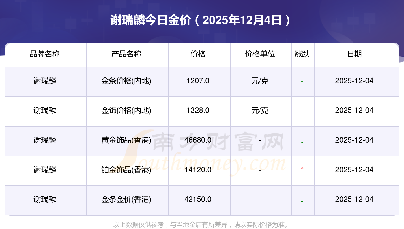 謝瑞麟今日黃金價(jià)格行情如何:黃金價(jià)格1328.0元/克,鉑金價(jià)格671.0元/克,飾品金價(jià)(內(nèi)地)1328.0元/克,黃金飾品(香港)46730.0,鉑金價(jià)格(香港)19260.0,金條價(jià)格(香港)42160.0,金條金價(jià)(內(nèi)地)1165.0元/克,黃金價(jià)格1325.0元/克,鉑金價(jià)格600.0元/克,足金價(jià)格1325.0元/克,黃金價(jià)格1326.0元/克。