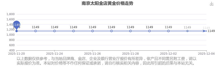 2025年12月4日,南京太陽金店的黃金價格標價達到 1149.0元/克。
