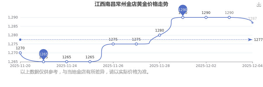 (2025年12月4日)江西南昌常州金店黃金價(jià)格現(xiàn)在為1287.0元/克。