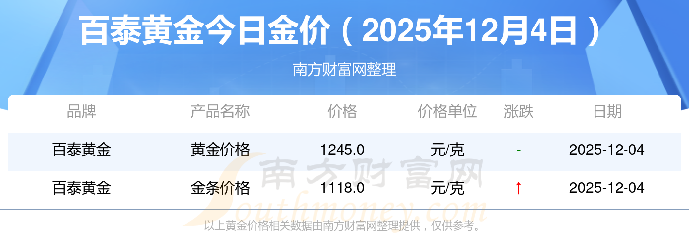 百泰黃金今天的黃金價值幾何?詳情如下: