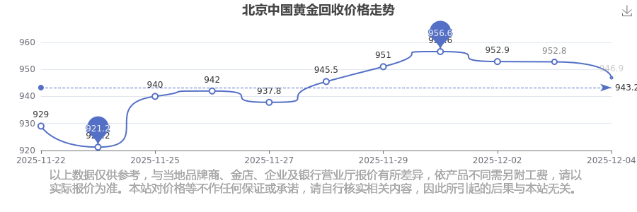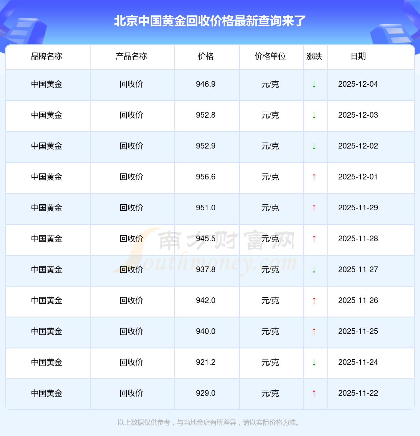 北京中國黃金在 2025年12月4日,回收價的售賣價格是 946.9元/克。