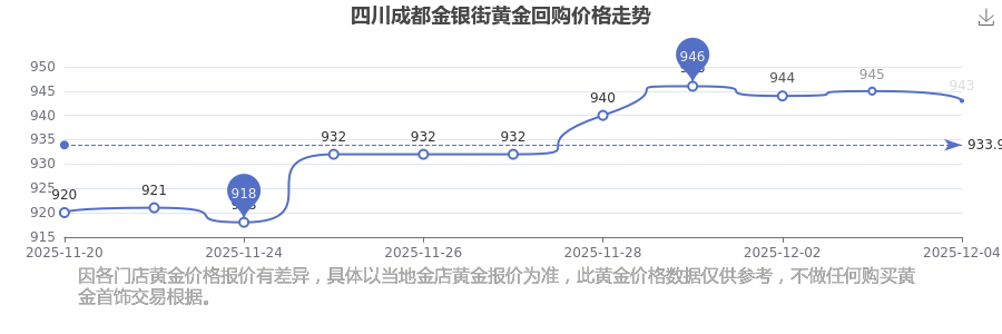 943.0元/克,此乃四川成都金銀街于 2025年12月4日黃金回購(gòu)的掛牌價(jià)格。