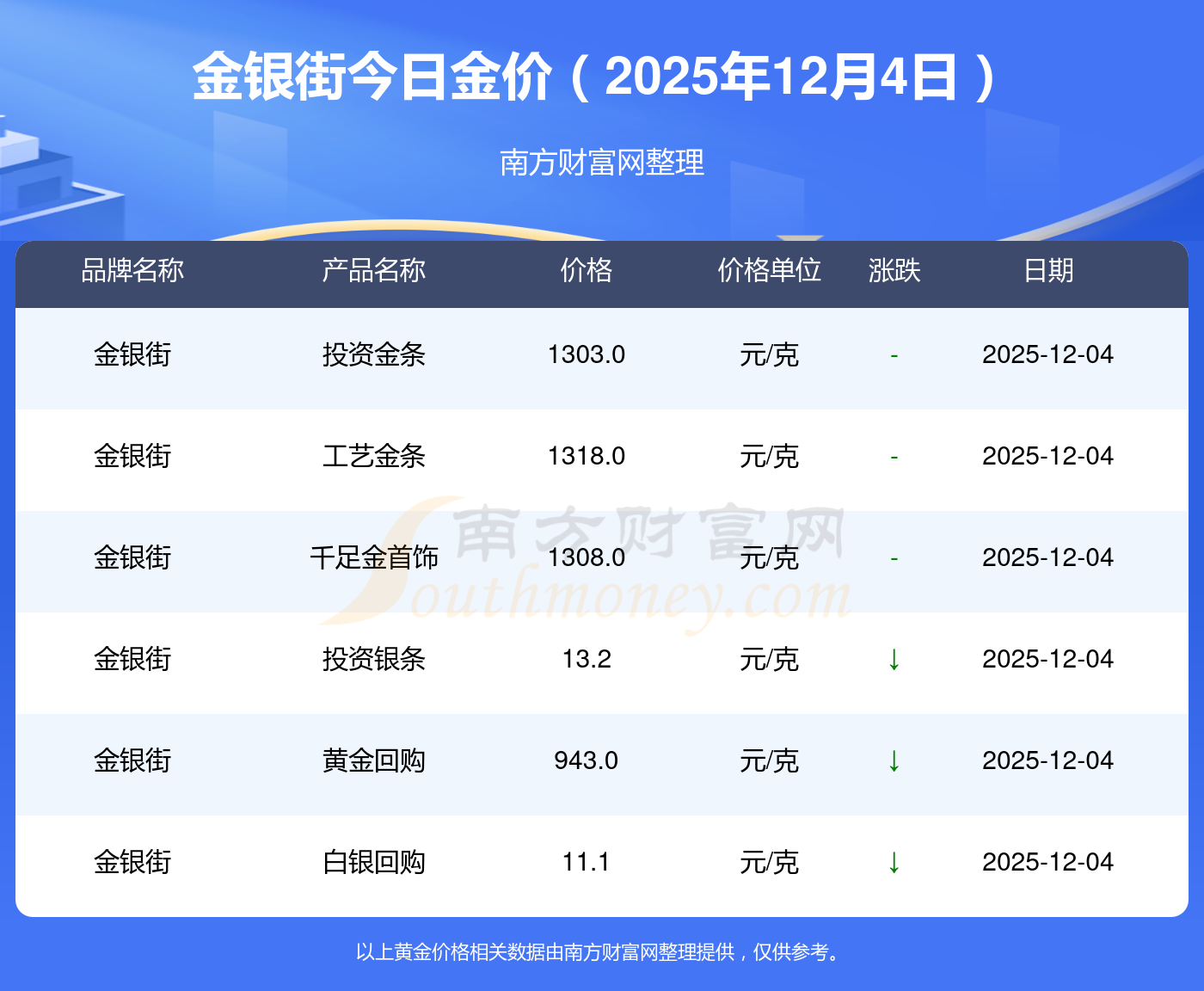 黃金價(jià)格1328.0元/克,鉑金價(jià)格671.0元/克,飾品金價(jià)(內(nèi)地)1328.0元/克,黃金飾品(香港)46730.0,鉑金價(jià)格(香港)19260.0,金條價(jià)格(香港)42160.0,金條金價(jià)(內(nèi)地)1165.0元/克,黃金價(jià)格1325.0元/克,鉑金價(jià)格600.0元/克,足金價(jià)格1325.0元/克,黃金價(jià)格1326.0元/克。