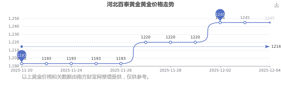 2025年12月4日,河北百泰黃金的黃金價(jià)格標(biāo)價(jià)達(dá)到 1245.0元/克。