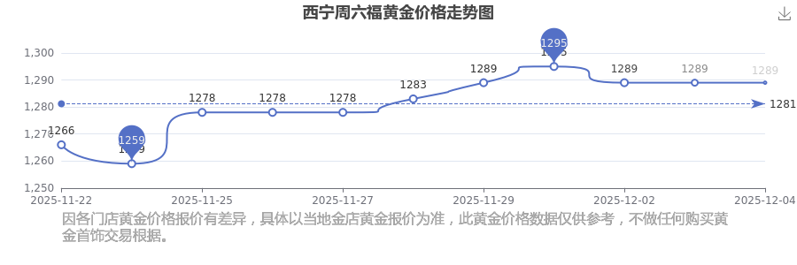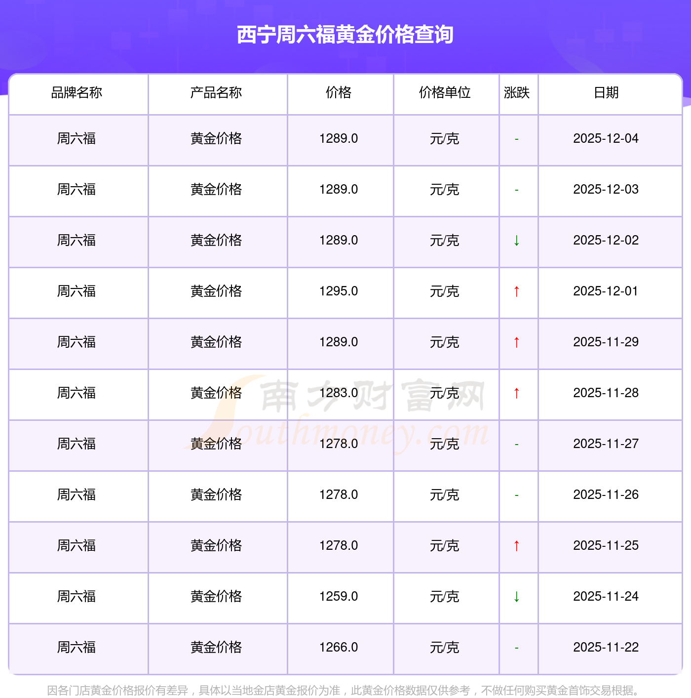 今日西寧周六福黃金價(jià)格是1289.0元/克。