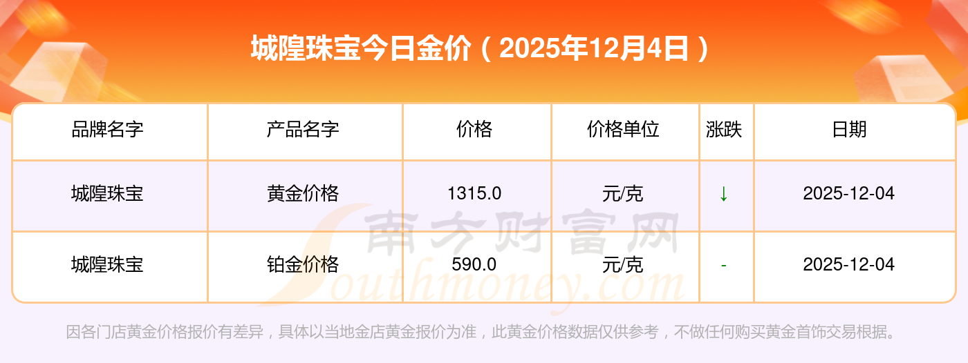 城隍珠寶金價今日價格: