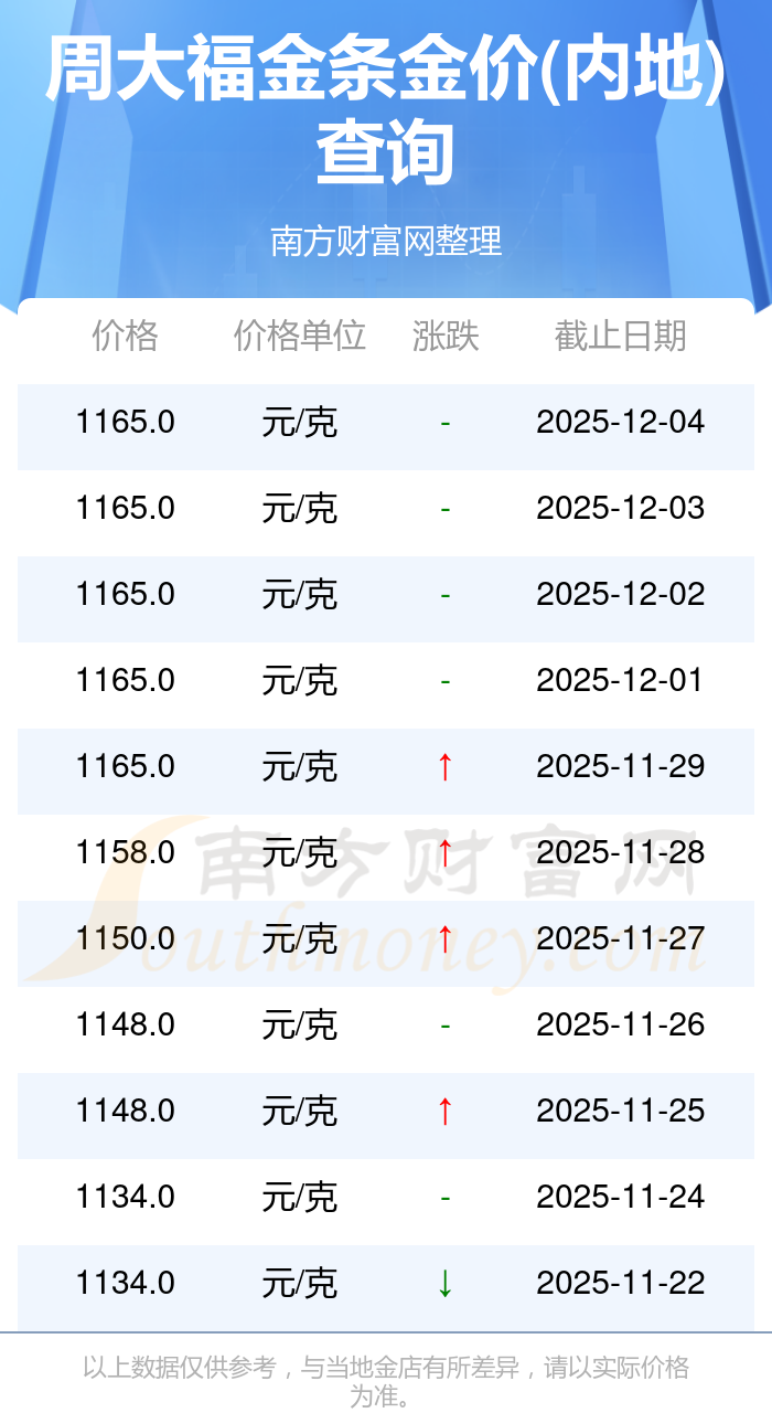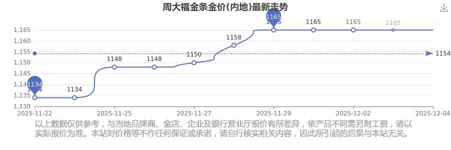 據(jù)了解,周大福今日金條金價(jià)(內(nèi)地)為1165.0元/克。