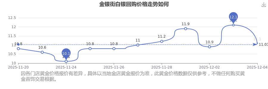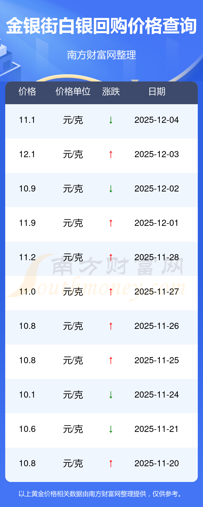 今日金銀街白銀回購(gòu)價(jià)格最新查詢:11.1元/克。