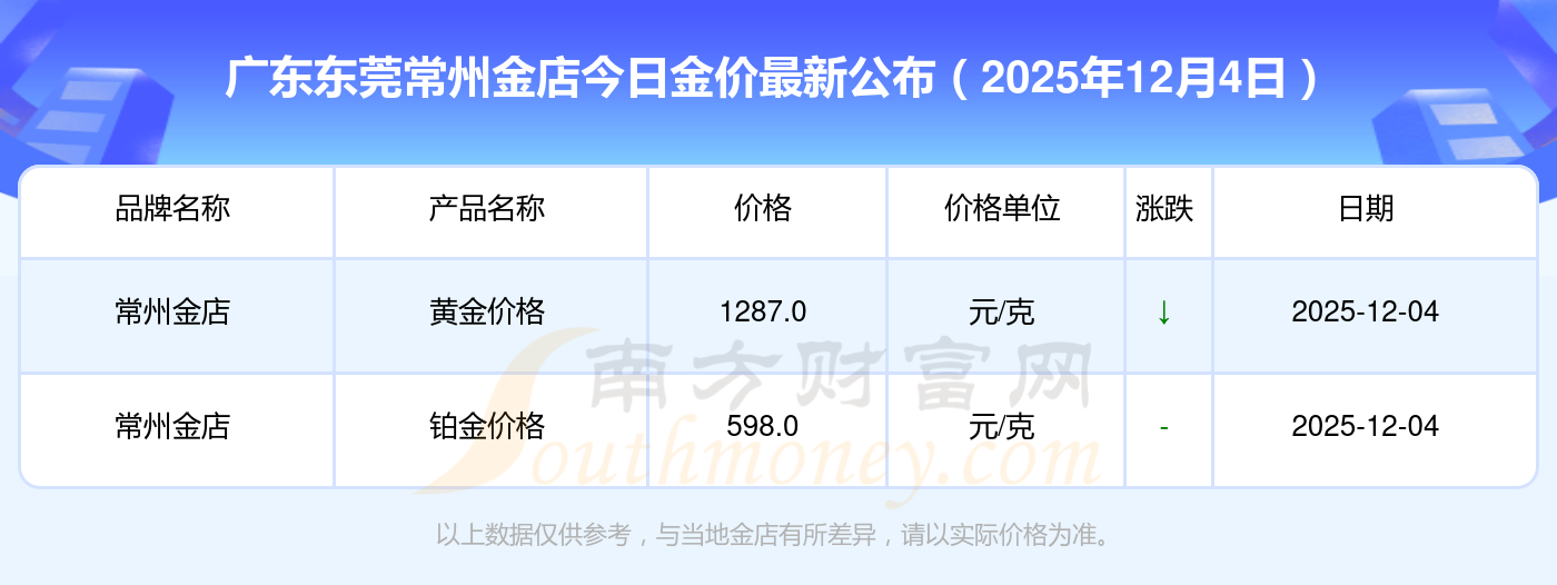 2025年12月4日廣東東莞常州金店每克黃金的市場價(jià)格是多少:黃金價(jià)格1328.0元/克,鉑金價(jià)格671.0元/克,飾品金價(jià)(內(nèi)地)1328.0元/克,黃金飾品(香港)46730.0,鉑金價(jià)格(香港)19260.0,金條價(jià)格(香港)42160.0,金條金價(jià)(內(nèi)地)1165.0元/克,黃金價(jià)格1325.0元/克,鉑金價(jià)格600.0元/克,足金價(jià)格1325.0元/克,黃金價(jià)格1326.0元/克。