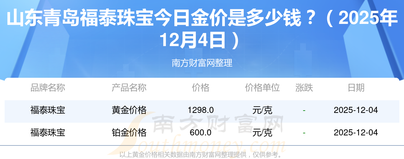 山東青島福泰珠寶當下黃金一克的價錢是多少?