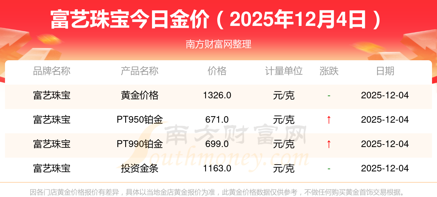 富藝珠寶金價(jià)今日價(jià)格:黃金價(jià)格1328.0元/克,鉑金價(jià)格671.0元/克,飾品金價(jià)(內(nèi)地)1328.0元/克,黃金飾品(香港)46730.0,鉑金價(jià)格(香港)19260.0,金條價(jià)格(香港)42160.0,金條金價(jià)(內(nèi)地)1165.0元/克,黃金價(jià)格1325.0元/克,鉑金價(jià)格600.0元/克,足金價(jià)格1325.0元/克,黃金價(jià)格1326.0元/克。