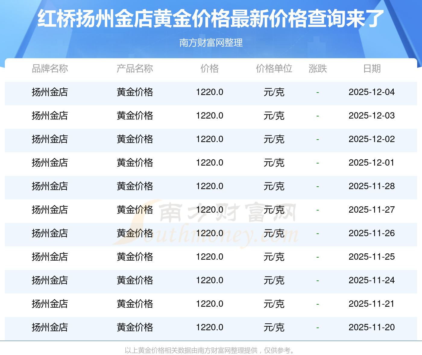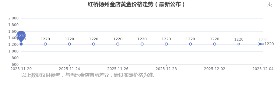 2025年12月4日,紅橋揚(yáng)州金店黃金價(jià)格每克的價(jià)值量定格在1220.0元/克。