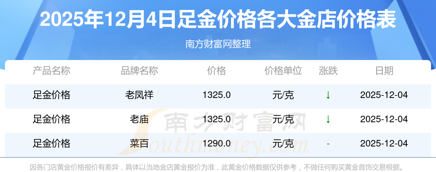 各大金店足金價(jià)格最新公布了,2025年12月4日各大金店足金價(jià)格多少錢一克