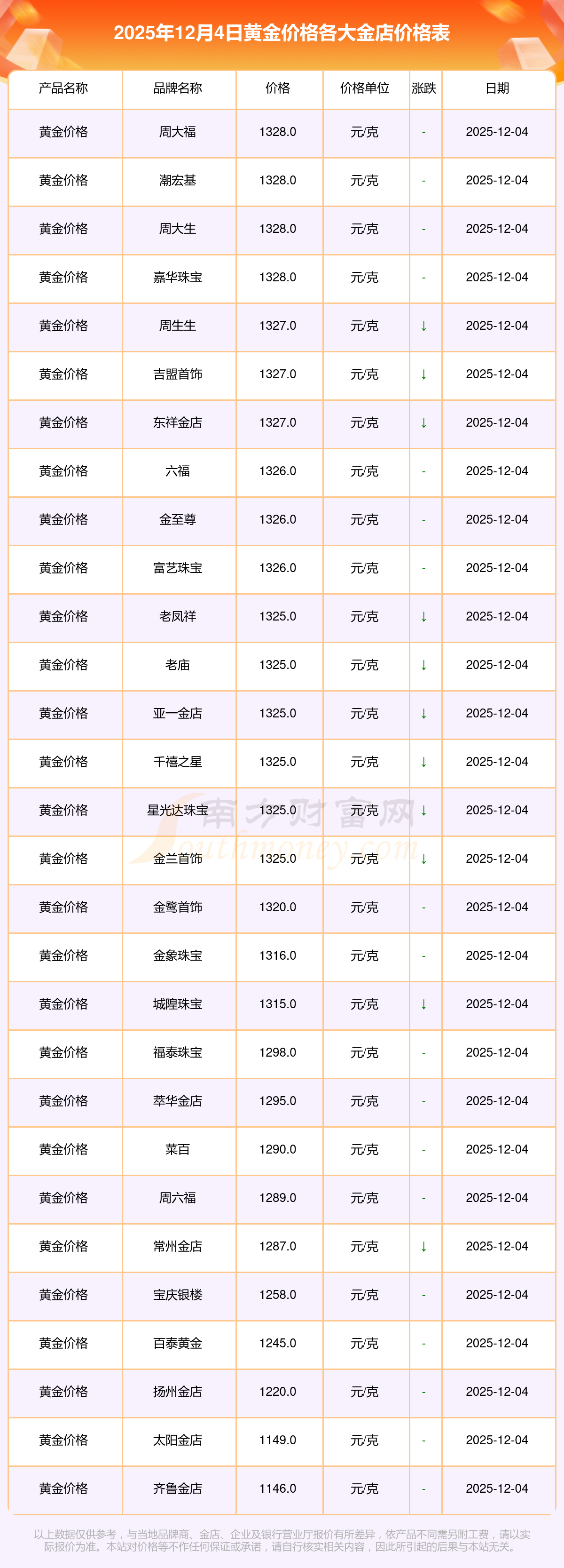 現(xiàn)在黃金價(jià)格多少錢(qián)一克_2025年12月4日各金店黃金價(jià)格表最新,一起來(lái)看看吧!