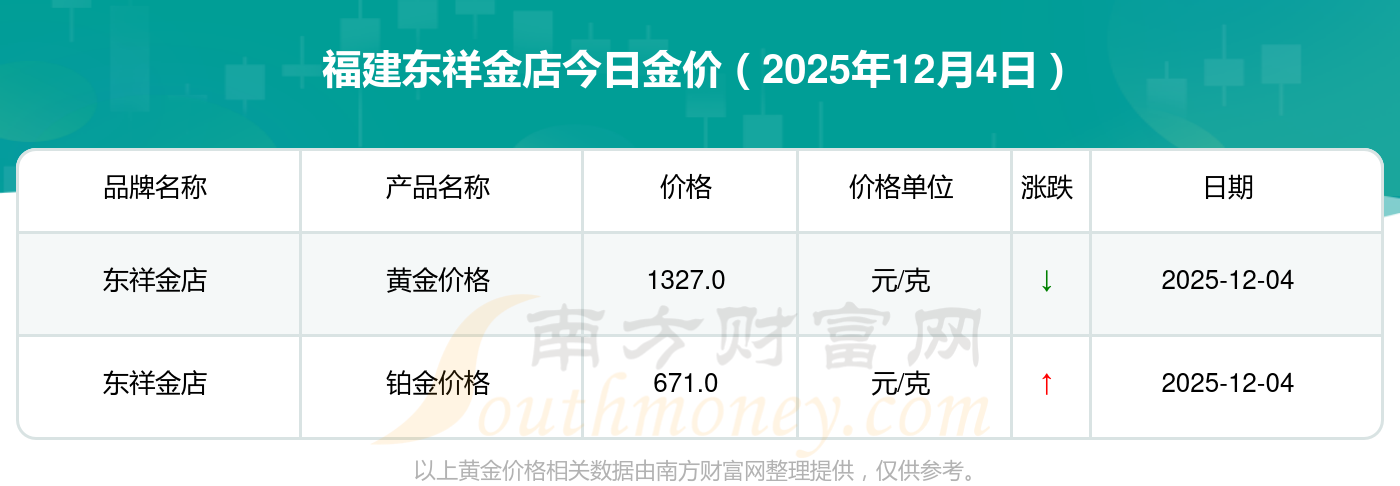 福建東祥金店黃金價(jià)格表_今日金價(jià)表查詢(xún)(2025年12月4日)