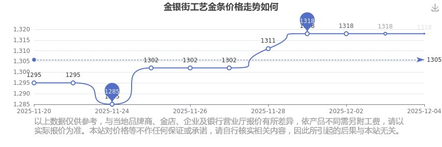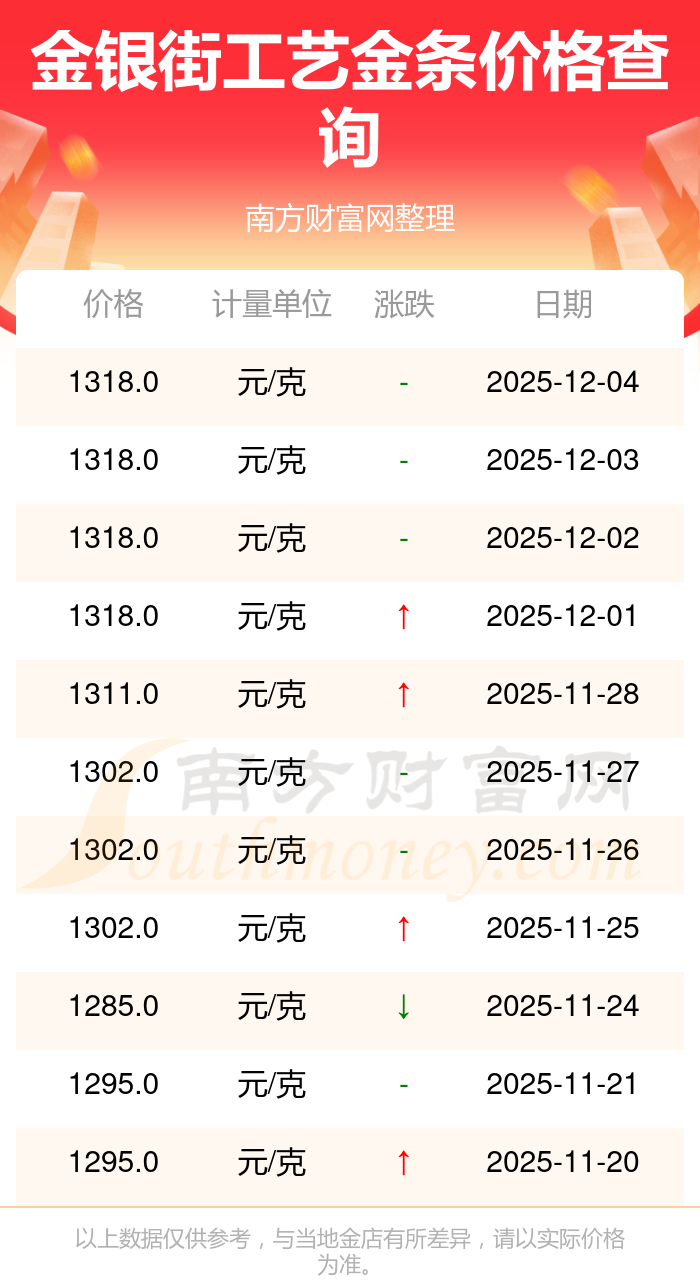 1318.0元/克的價(jià)格,是金銀街今日 工藝金條的最新行情。