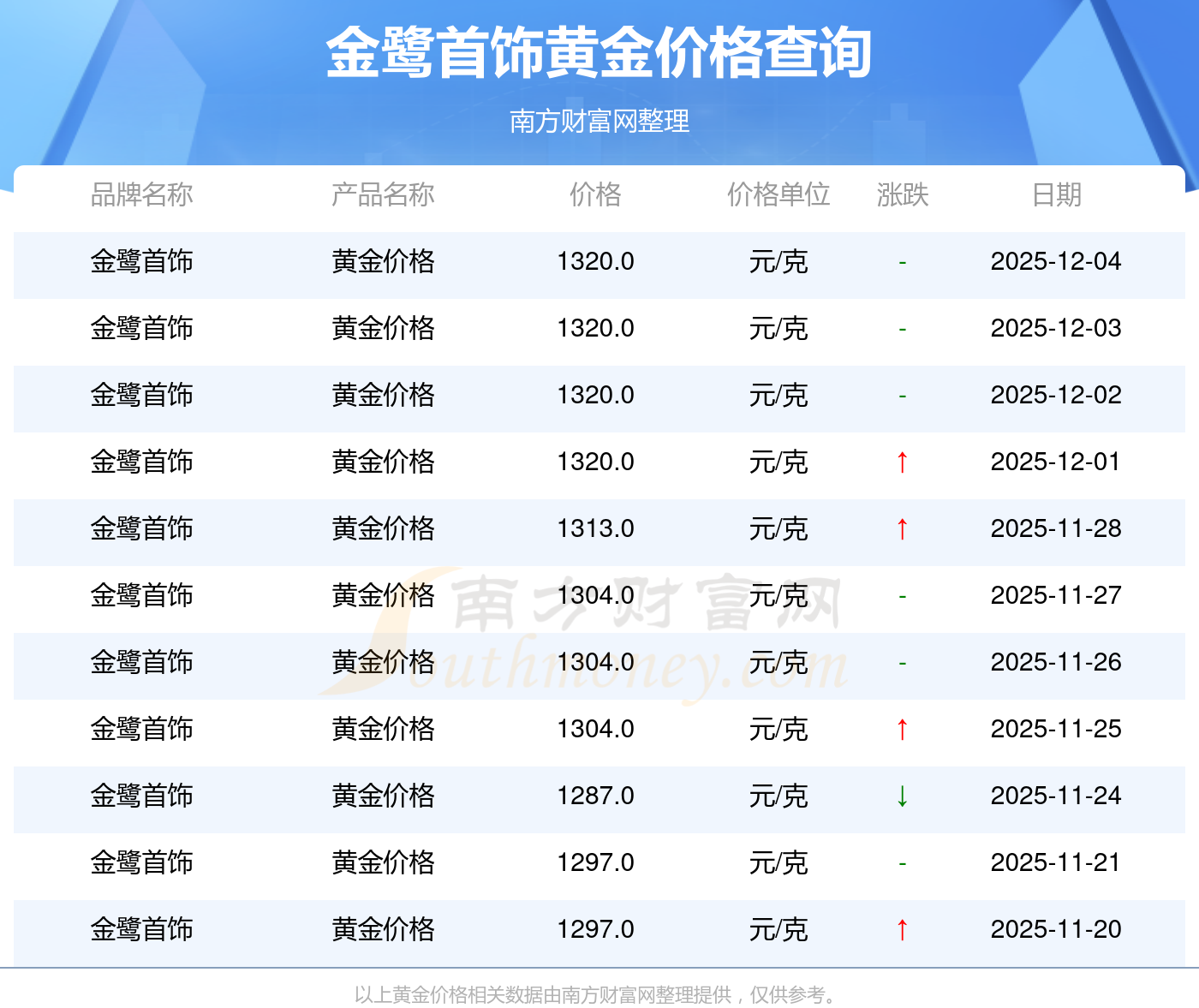以上數據僅供參考,與當地金店有所差異,請以實際價格為準。