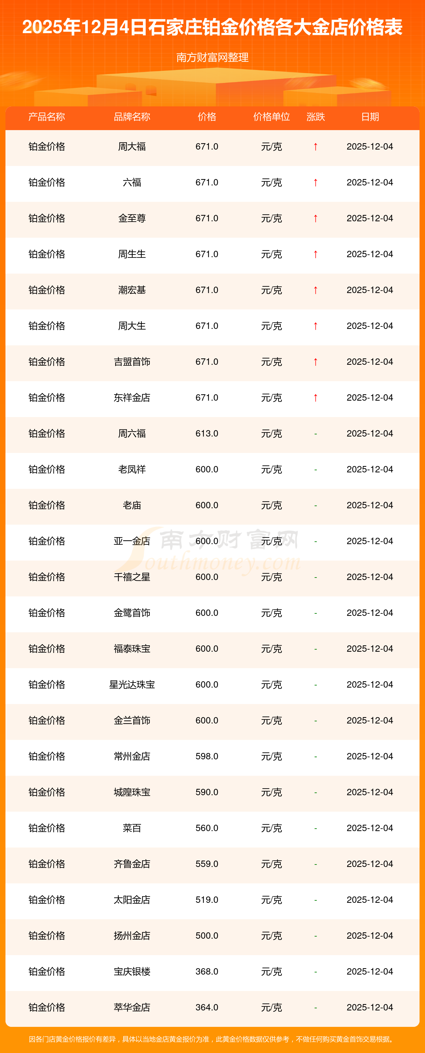 一、 石家莊各金店鉑金價格多少錢1克?石家莊各金店鉑金價格最新詳情