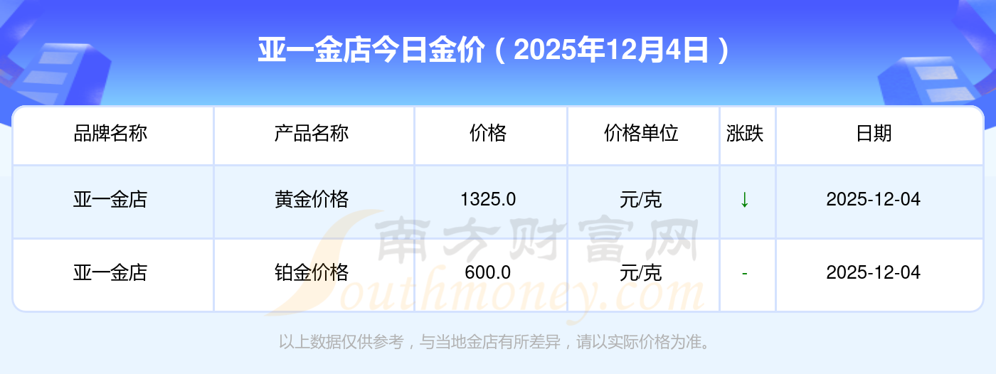 今天是2025年12月4日,周大福、周大福、周大福、周大福、周大福、周大福、周大福、老鳳祥、老鳳祥、老鳳祥、六福等各大金店品牌黃金價格最新價格如下:周大福1328.0元/克、周大福671.0元/克、周大福1328.0元/克、周大福46730.0、周大福19260.0、周大福42160.0、周大福1165.0元/克、老鳳祥1325.0元/克、老鳳祥600.0元/克、老鳳祥1325.0元/克、六福1326.0元/克。