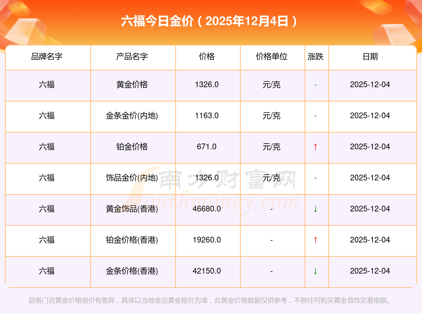 六福金價(jià)今日價(jià)格: