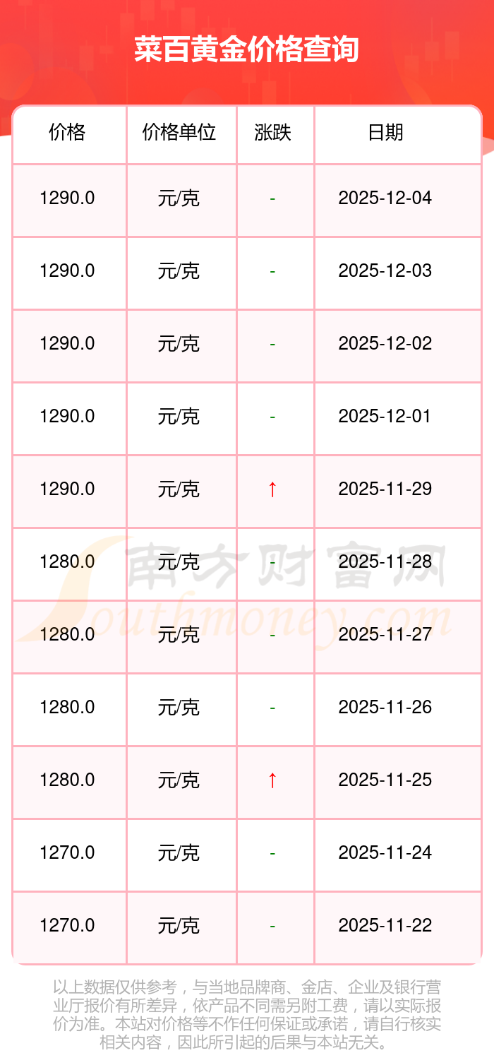 菜百今日黃金價(jià)格的最新市場行情價(jià)為1290.0元/克。