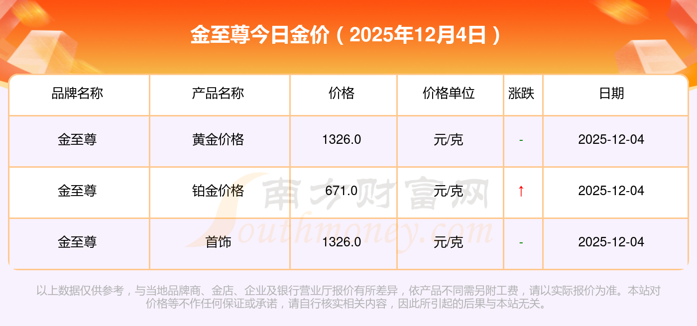 黃金價格1328.0元/克,鉑金價格671.0元/克,飾品金價(內地)1328.0元/克,黃金飾品(香港)46730.0,鉑金價格(香港)19260.0,金條價格(香港)42160.0,金條金價(內地)1165.0元/克,黃金價格1325.0元/克,鉑金價格600.0元/克,足金價格1325.0元/克,黃金價格1326.0元/克。