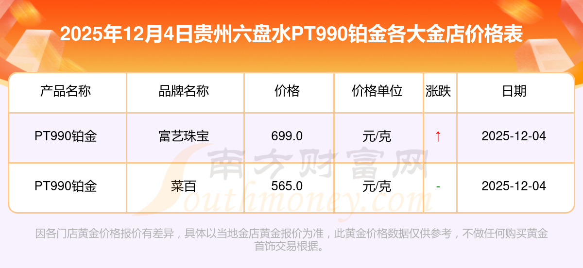 一、貴州六盤水各大金店P(guān)T990鉑金最新價(jià)格匯總來了