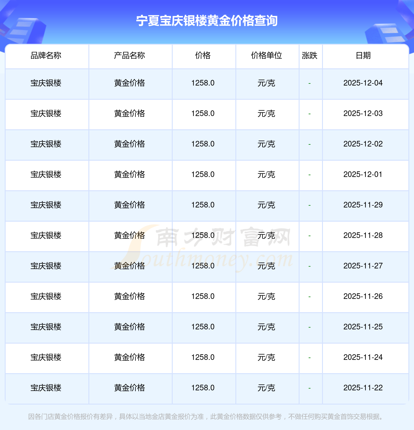 今日寧夏寶慶銀樓黃金價(jià)格公布請問今天,黃金一克的價(jià)位是多少今日2025年12月4日,寧夏寶慶銀樓黃金價(jià)格為1258.0元/克。