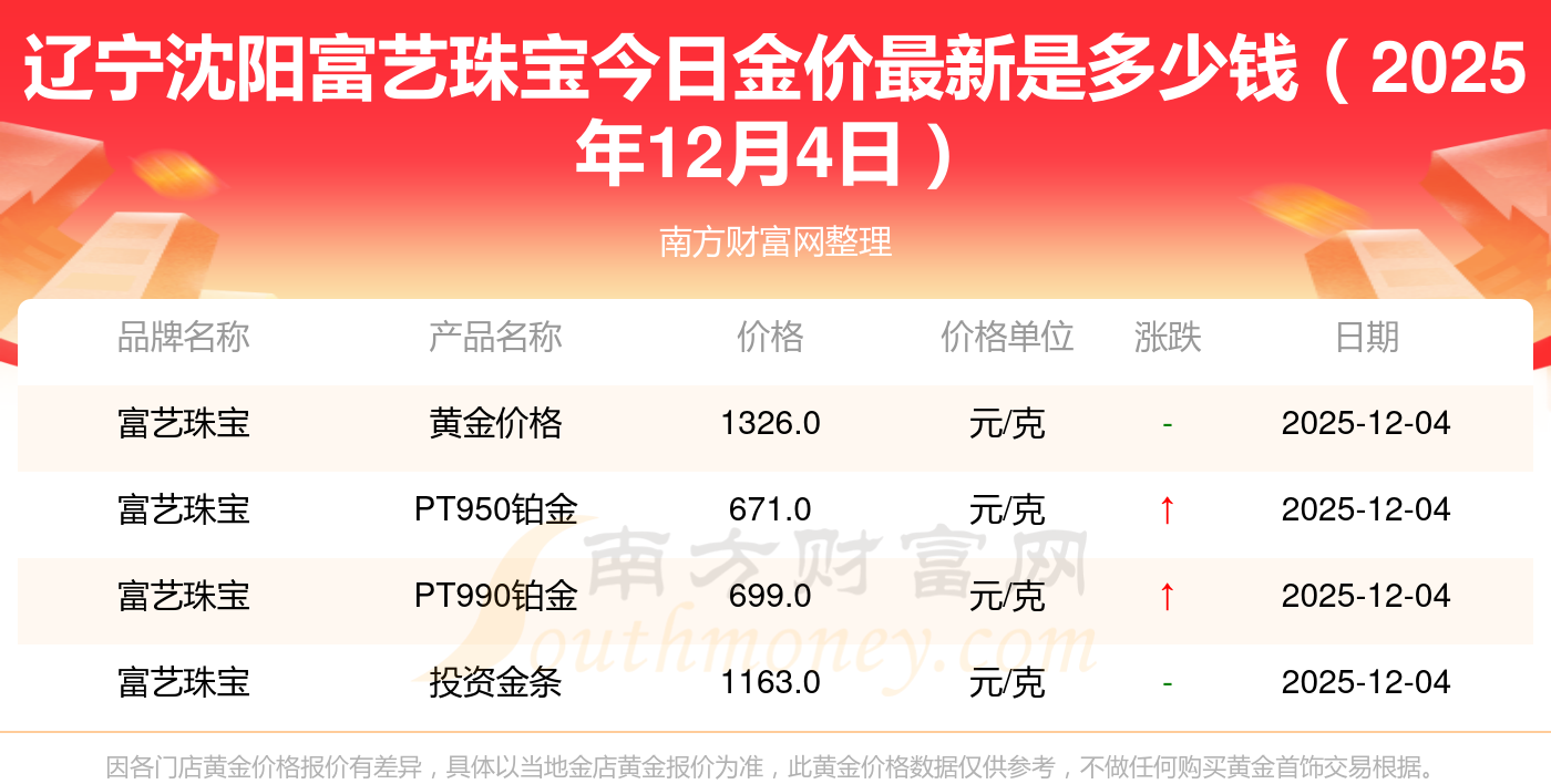 2025年12月4日遼寧沈陽富藝珠寶一克黃金對應(yīng)的價格是多少?黃金價格1328.0元/克,鉑金價格671.0元/克,飾品金價(內(nèi)地)1328.0元/克,黃金飾品(香港)46730.0,鉑金價格(香港)19260.0,金條價格(香港)42160.0,金條金價(內(nèi)地)1165.0元/克,黃金價格1325.0元/克,鉑金價格600.0元/克,足金價格1325.0元/克,黃金價格1326.0元/克。