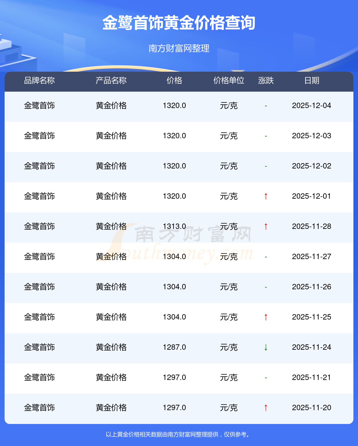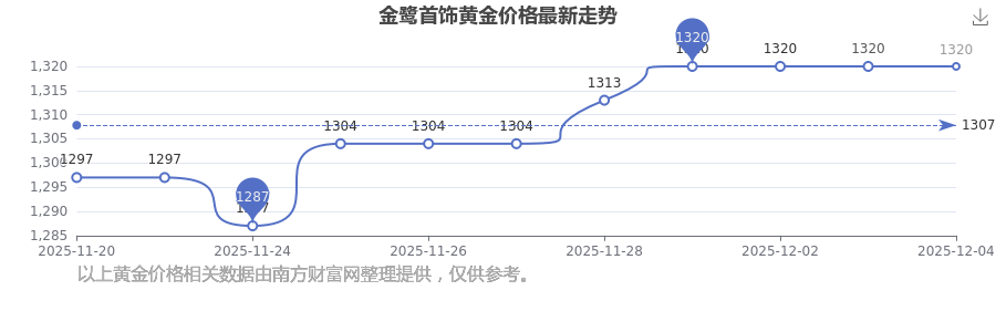 1320.0元/克的價(jià)格,是金鷺首飾今日 黃金價(jià)格的最新行情。