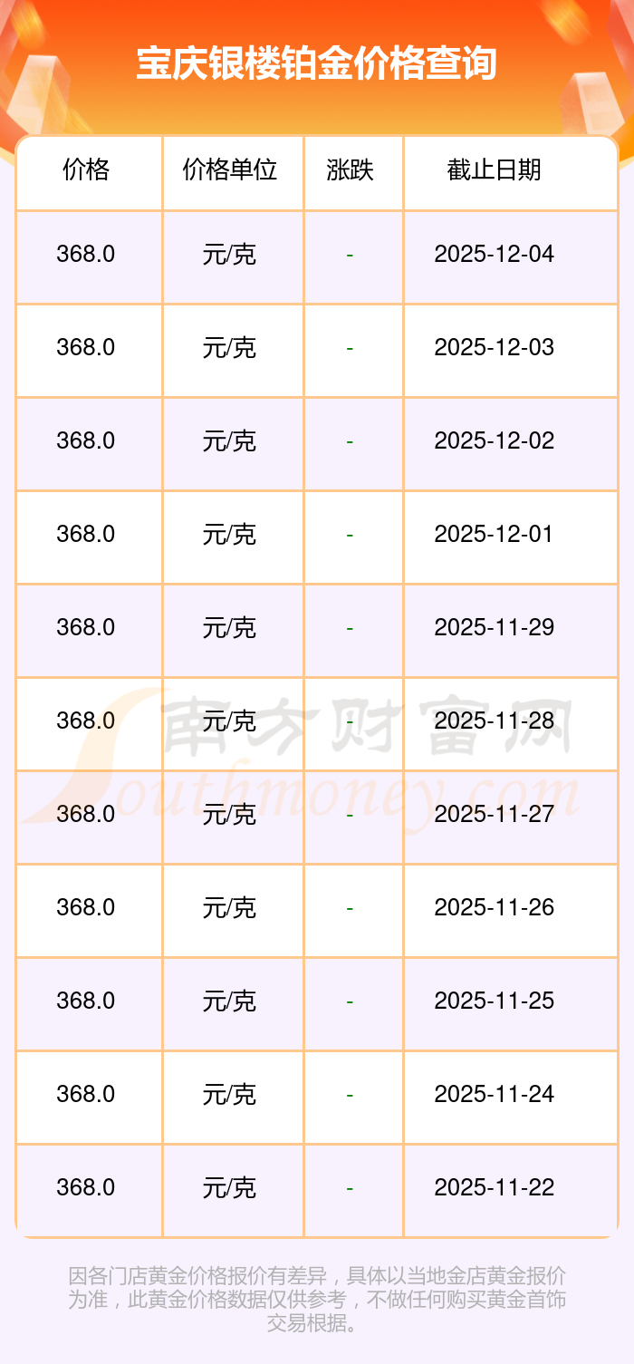 368.0元/克的價(jià)格,是寶慶銀樓今日 鉑金價(jià)格的最新行情。