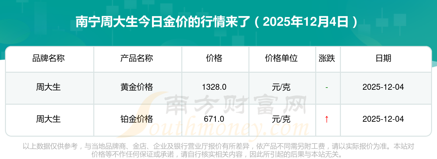 今天黃金價(jià)格多少一克_2025年12月4日南寧周大生黃金今日最新價(jià)格表公布,隨小編來(lái)了解一下詳情。