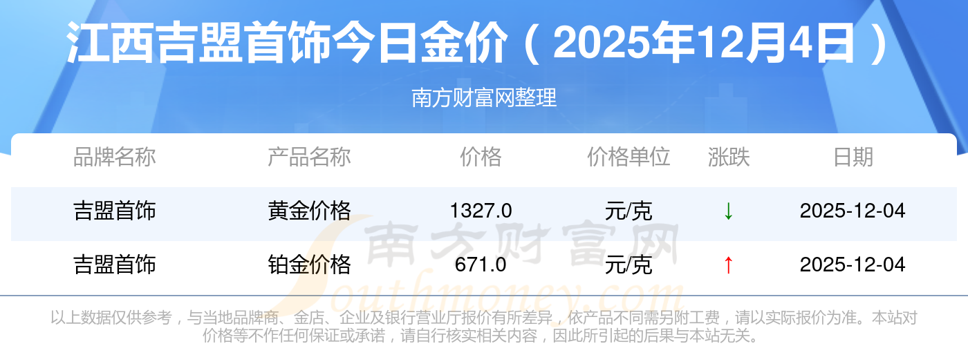 2025年12月4日吉盟首飾金條多少錢1克 現(xiàn)在江西吉盟首飾黃金價格查詢