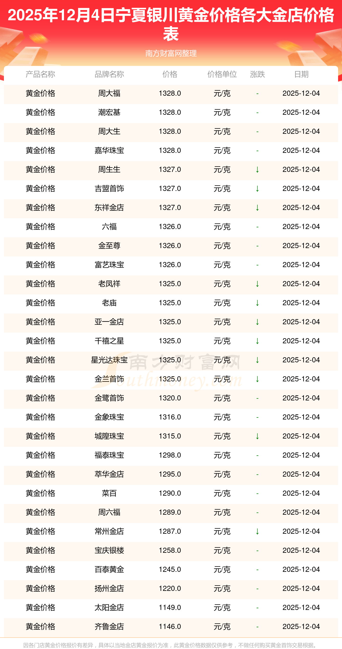 一、寧夏銀川各大金店黃金價(jià)格多少錢一克?黃金價(jià)格今日價(jià)格查詢表