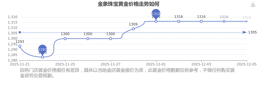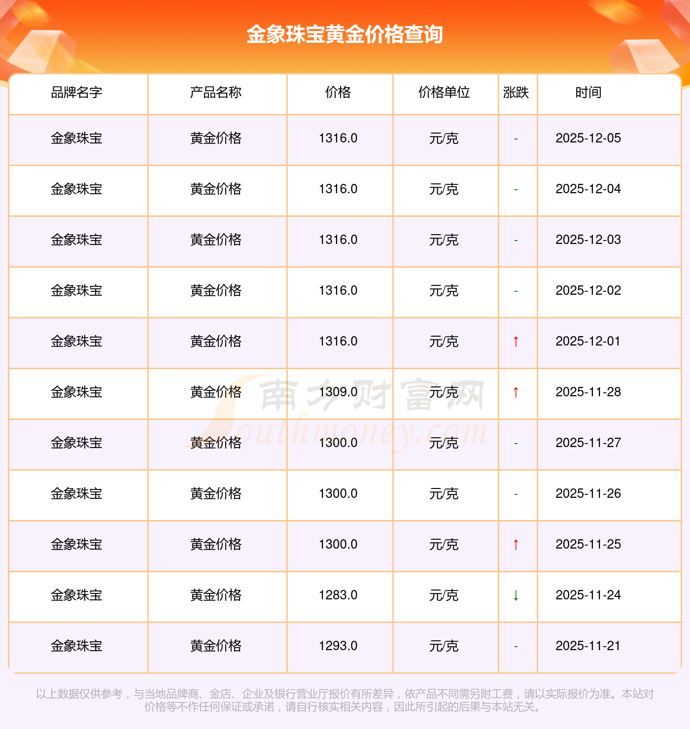 想查詢今天黃金價格,此刻黃金一克的價格是多少呀?黃金每一克的價位大概是多少呢?據(jù)了解,金象珠寶今日黃金價格為1316.0元/克。