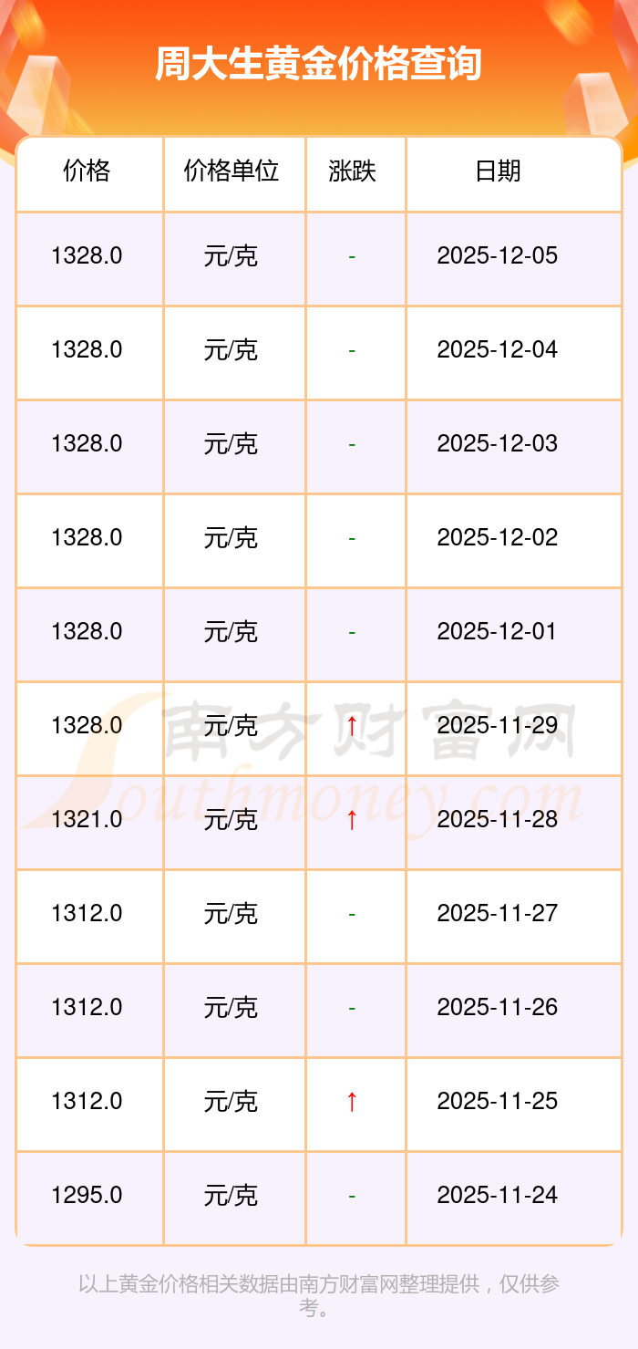 今日黃金價格具體是多少?現(xiàn)在一克黃金賣多少錢?黃金屬于優(yōu)良的導電導熱材料,有著良好的導熱特性。由于它化學穩(wěn)定性高、抗氧化性強,能制作高精度電子元件,所以常被用于電子工業(yè)中的特殊電路設計。今日(2025年12月7日),周大生黃金價格:1328.0元/克。