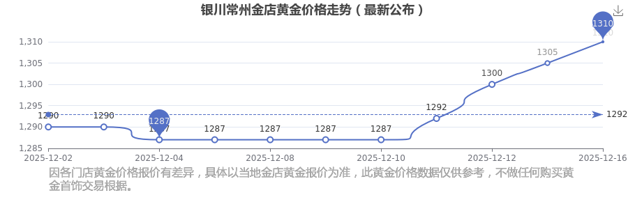 2025年12月16日,今日銀川常州金店黃金價(jià)格:1310.0元/克。