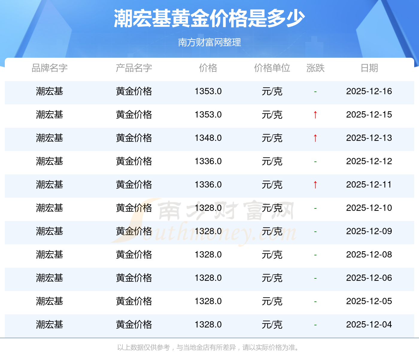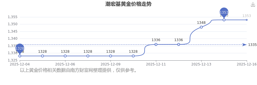 想知道當下黃金價格,今天黃金一克賣多少錢呢?一般情況下1克黃金的價格會在多少呢?今日潮宏基黃金價格為1353.0元/克。