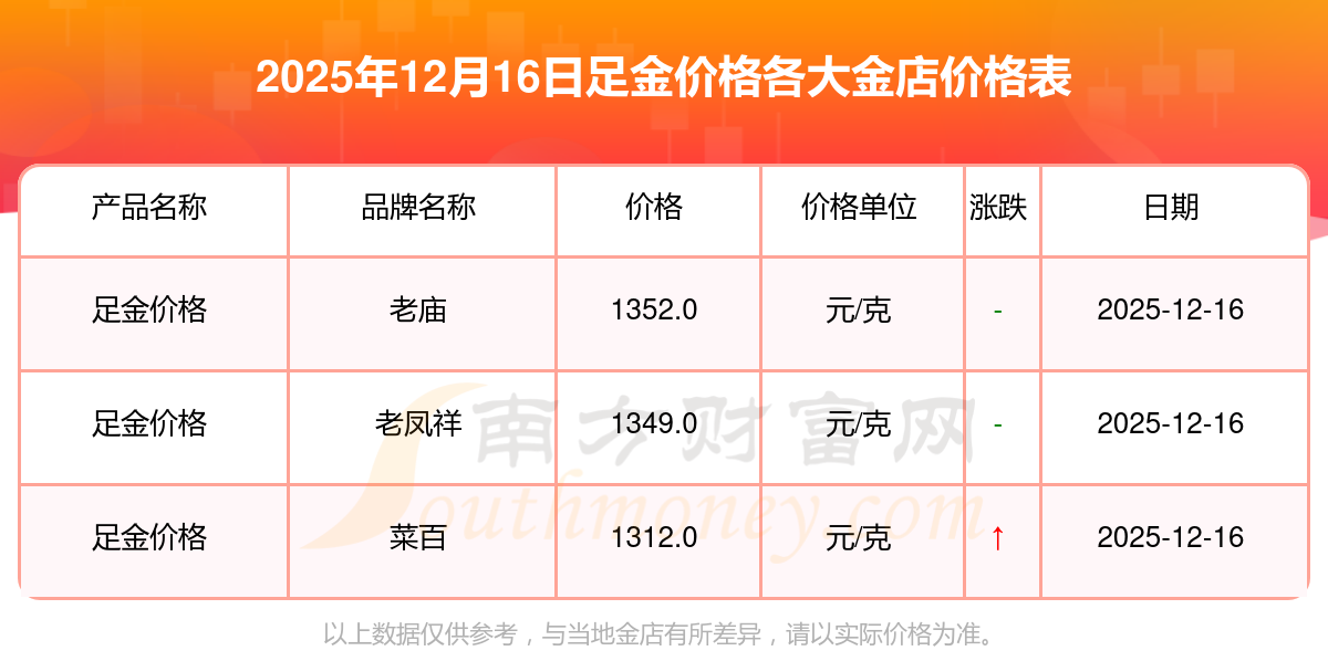 2025年12月16日各大金店足金價格一克多少錢?國內(nèi)各大金店今日足金價格表行情,一起來看看吧!