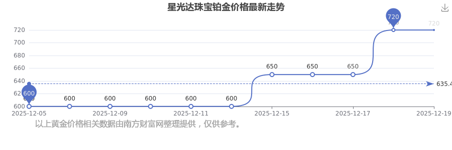 星光達珠寶 鉑金價格今日最新的價位是720.0元/克。