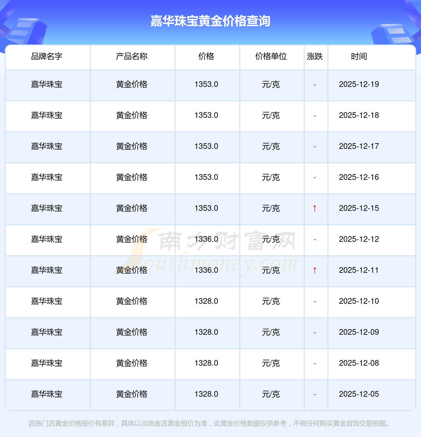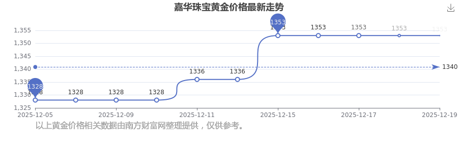 嘉華珠寶 黃金價(jià)格在今日更新至1353.0元/克。