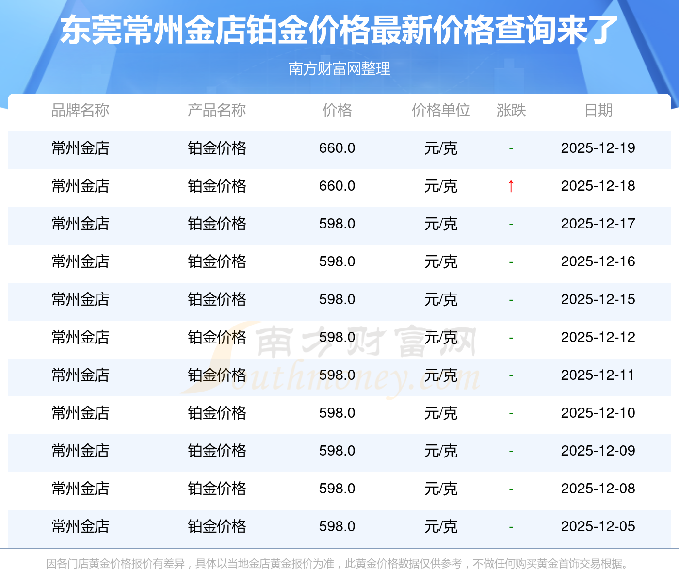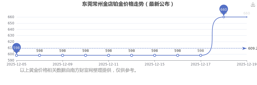 東莞常州金店在 2025年12月21日的鉑金價(jià)格零售價(jià)格為 660.0元/克。